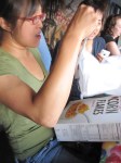 Another Saturday at the Greenpoint Food Market! I went with a mini-theme this time: mini chocolate cupcakes with mocha liqueur frosting (I’m seriously digging this whole alcohol in frosting thing), mini lemon raspberry muffins, and black ‘n white cookies..for which I of course made mini samples.